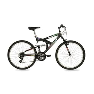 The 21 speed Shogun Rock Mountain Dual Suspension Mountain Bike is ready to bomb any trail. Built around a hand crafted steel frame and suspension fork, this all-terrain bicycle handles big hits and come back for more. With alloy rims, a Shimano rear derailleur and linear pull brakes, the Shogun Rock Mountain bike is one powerful package.